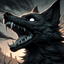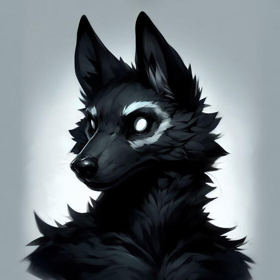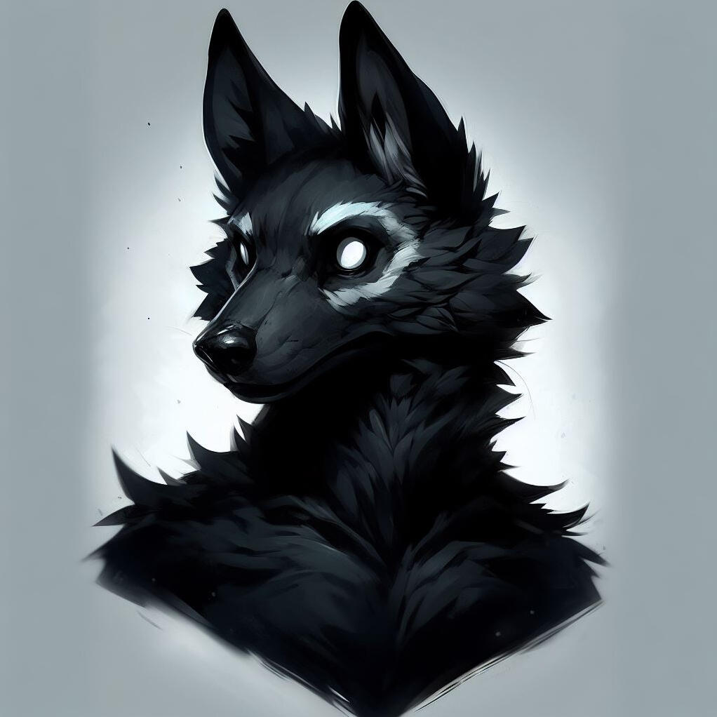 I'm a balck furred jackal with white eyes and marking around them. Partnered to a red dragon.