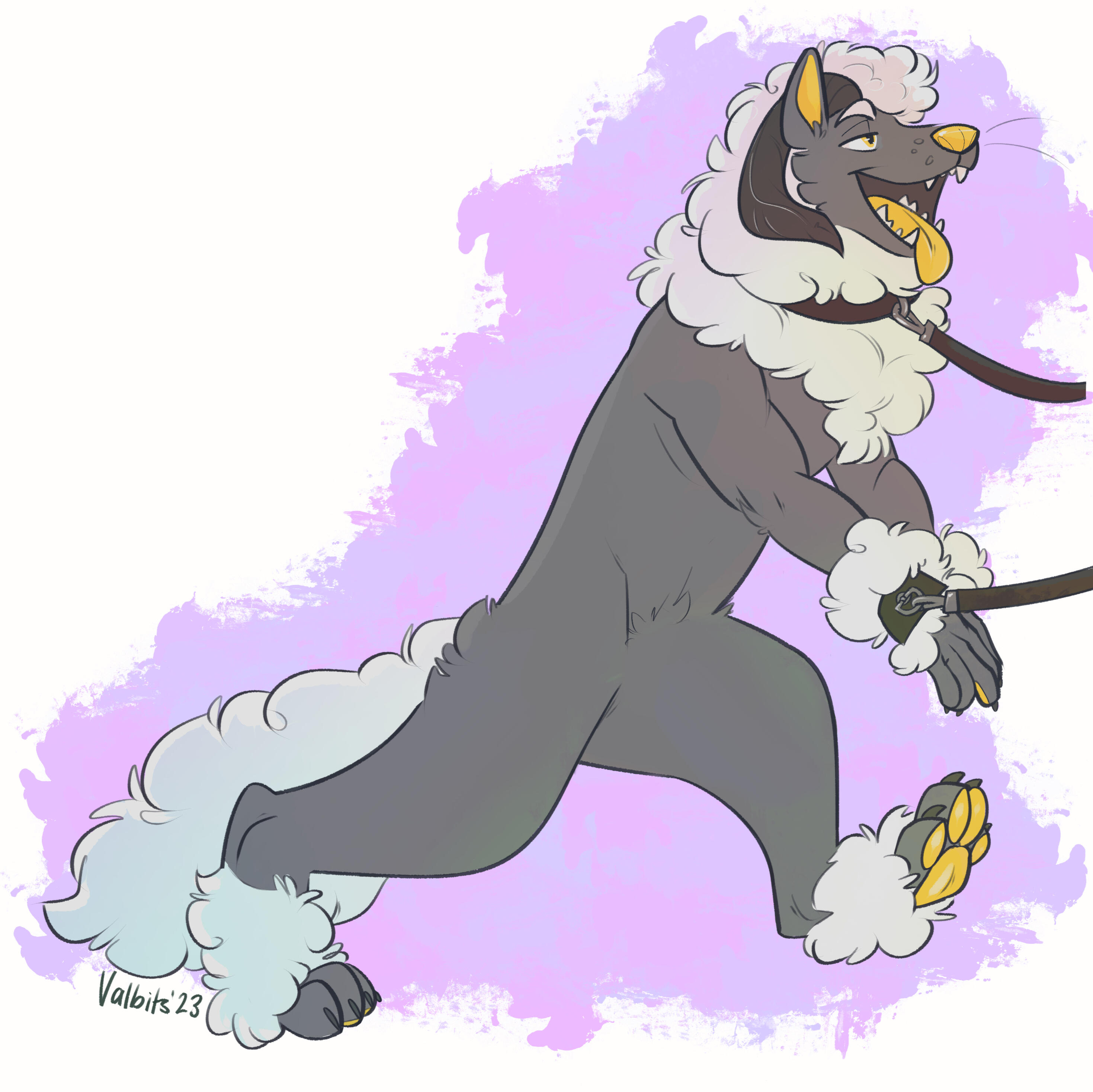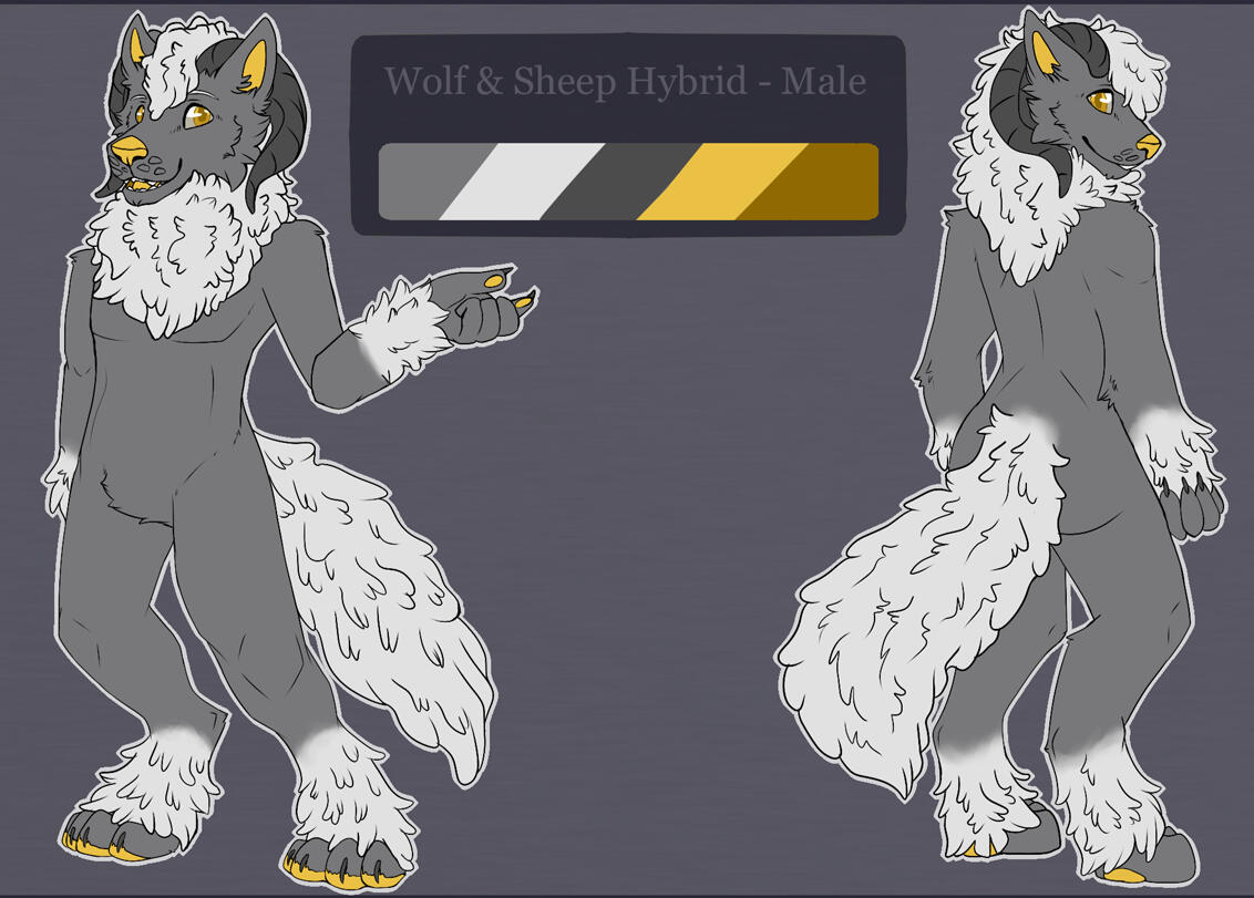 That's a sheep wolf hybrid with grey fur, white wool and two horns. There is also Aegis my black furred white eyed jackal OC.